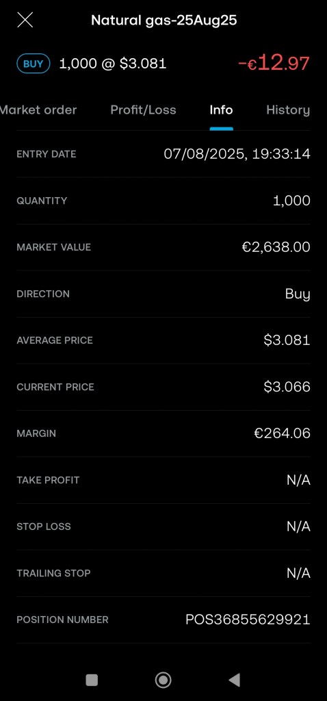Alright, fellow Trader —grab your popcorn (or your trading journals), because we’re diving into my latest adventure: a CFD Natural Gas Futures position(s) that’s either going to make me look like a trading wizard… or have me crying into my charts.